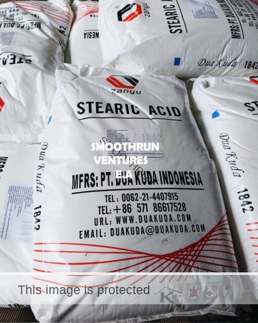 Stearic acid, one of the most common long-chain fatty acids, found in combined form in natural animal and vegetable fats. Commercial stearic acid is a mixture of approximately equal amounts of stearic and palmitic acids and small amounts of oleic acid. It is employed in the manufacture of candles, cosmetics, shaving soaps, lubricants, and pharmaceuticals.